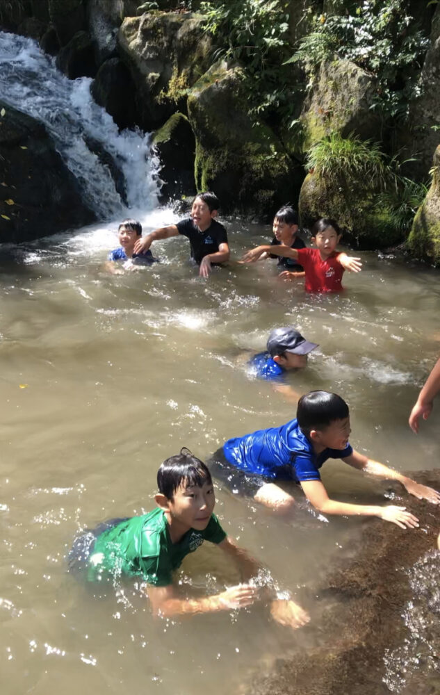 飛び込んだり泳いだり子供たちは自然と触れ合うことで、五感を刺激し、自主性や探究心を育てる体験となりました。